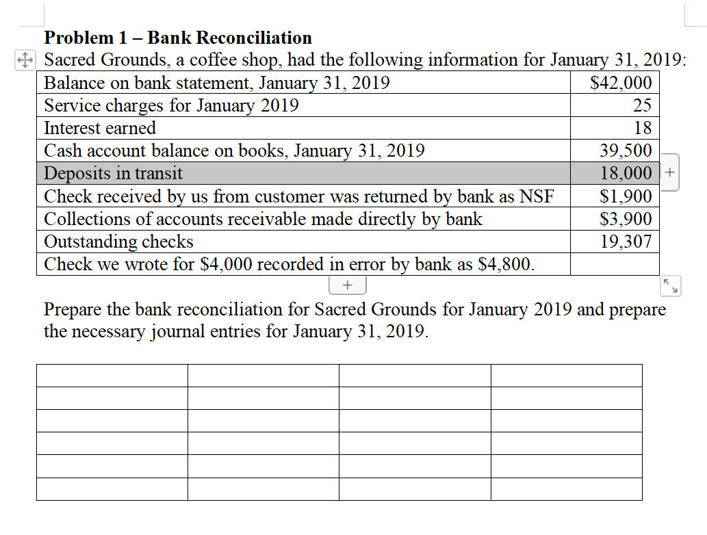 Solved Problem 1 Bank Reconciliation Sacred Grounds A Chegg Com